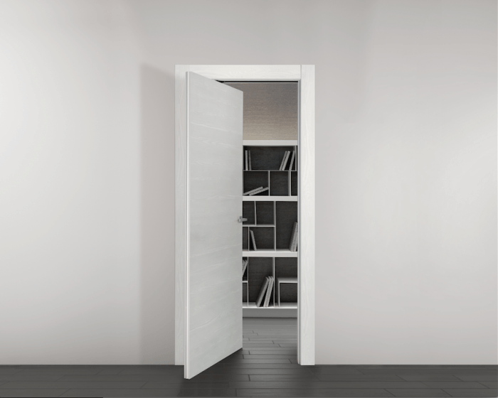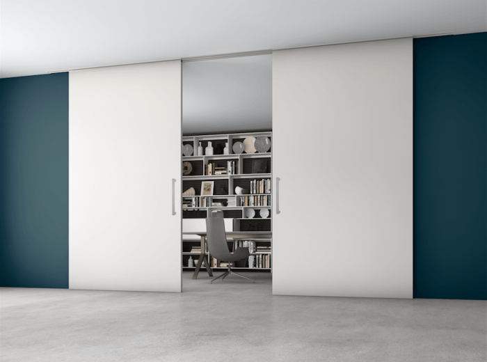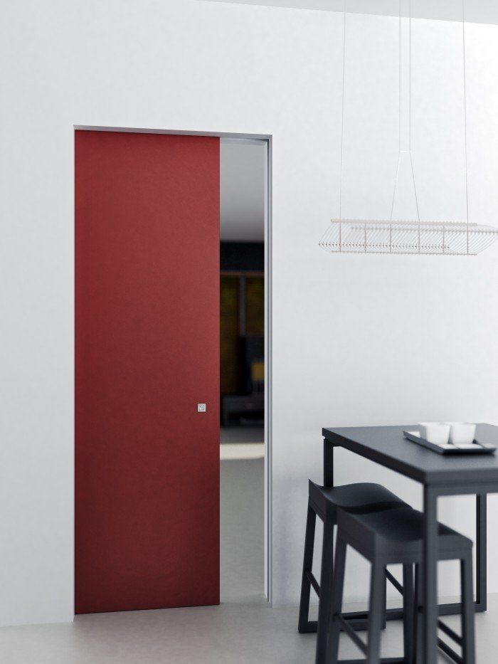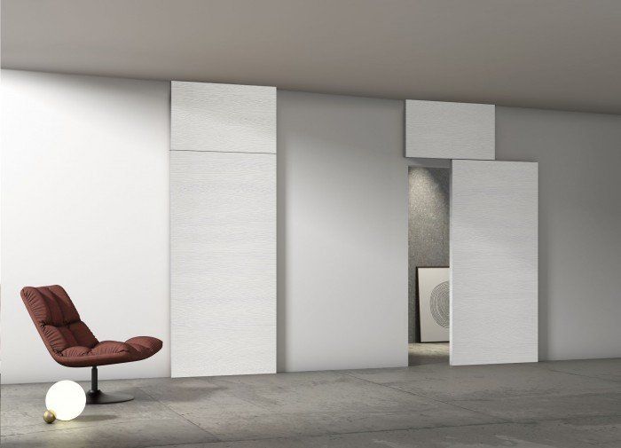 Nella porta scorrevole a scomparsa l’apertura avviene grazie a un controtelaio inserito nel muro, quindi l’installazione richiede un piccolo lavoro edile. Il grande vantaggio di questa soluzione è che le pareti di scorrimento, quelle all’interno delle quali scorre la porta, rimangono esternamente libere e quindi utilizzabili per arredi come armadi, librerie e altri mobili. A seconda del tipo di controtelaio è inoltre possibile ottenere diverse tipologie di apertura.